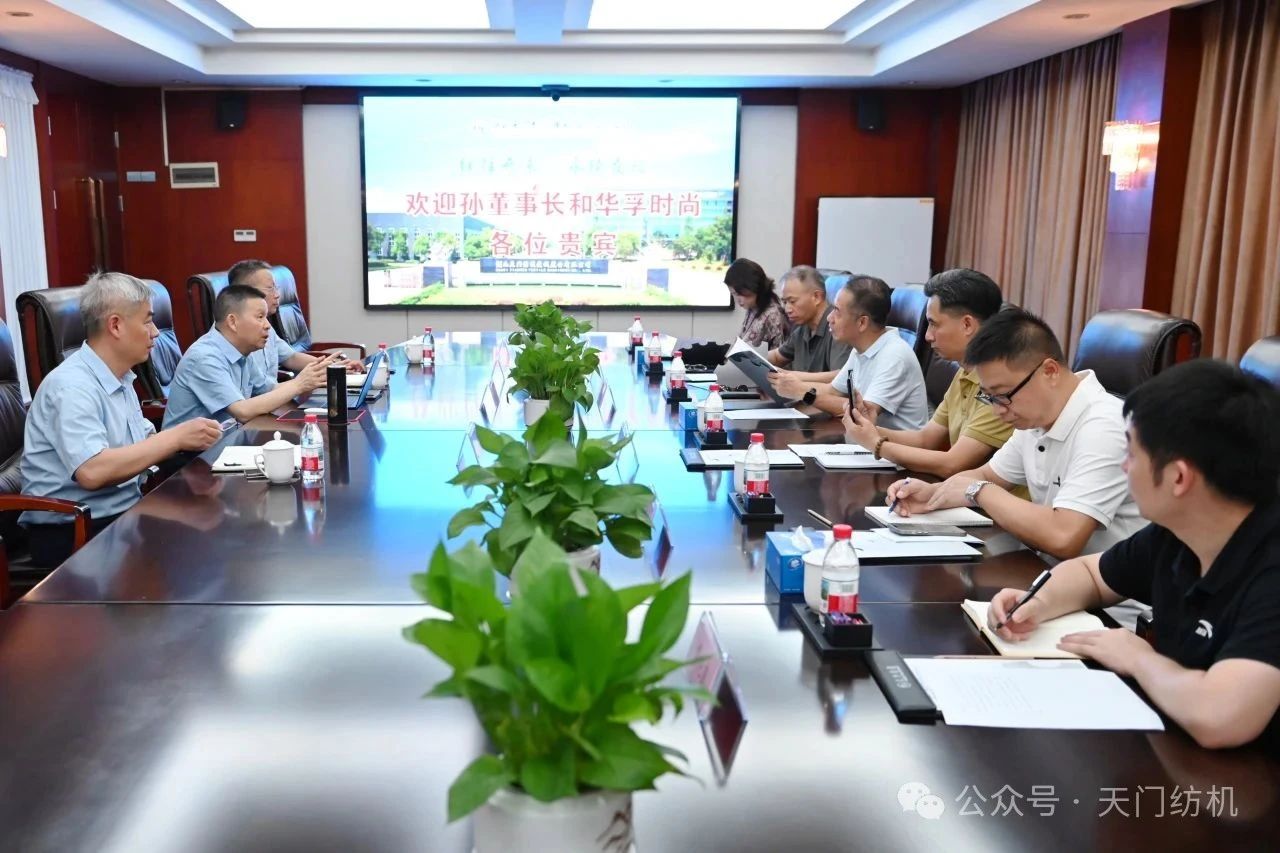 2025年8月26日,華孚時(shí)尚股份有限公司董事長孫偉挺一行6人專程到訪天門紡機(jī)進(jìn)行考察交流。公司董事長沈方勇等領(lǐng)導(dǎo)熱情接待到訪客人,雙方圍繞行業(yè)形勢(shì)及協(xié)同發(fā)展等議題進(jìn)行了深入交流,并就淮北及越南等新建項(xiàng)目的再次合作達(dá)成意向。